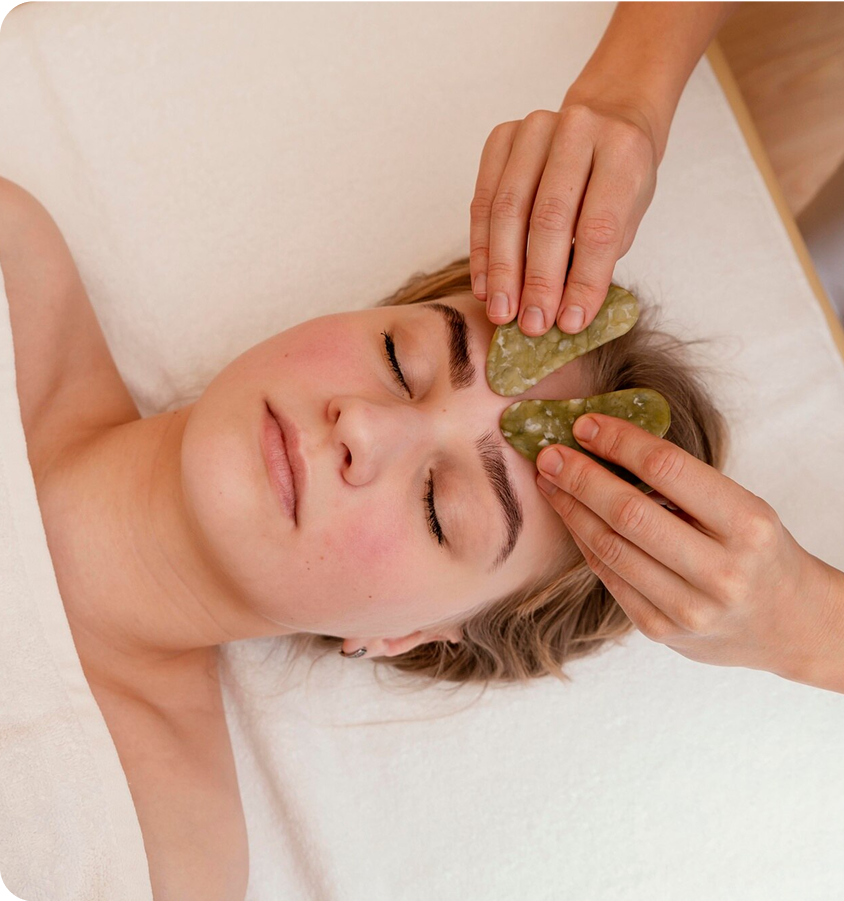 Técnica con herramientas de madera que tonifica, reafirma y esculpe el rostro. Ayuda a drenar líquidos, mejorar la elasticidad y reducir la flacidez.
